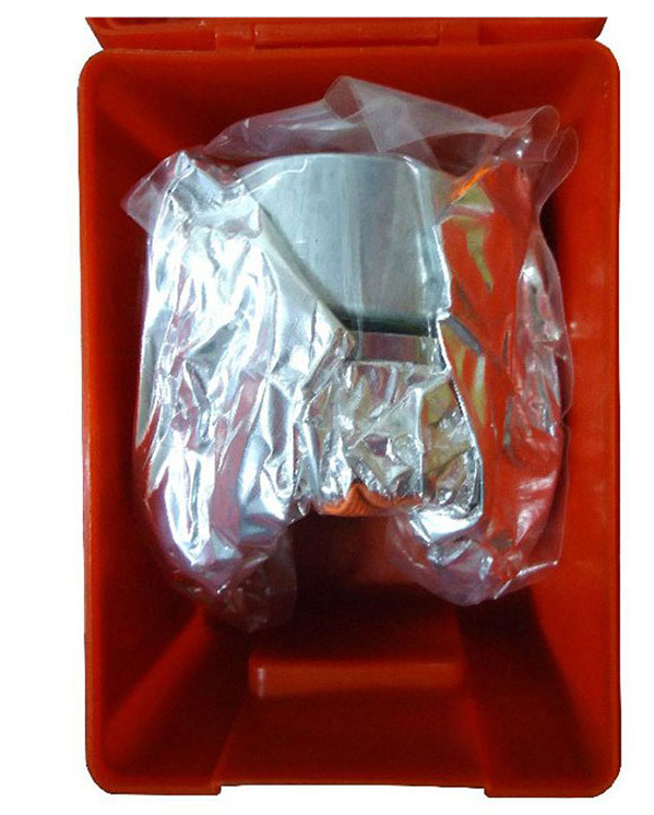 3、头罩表面由于涂复铝箔膜而反光,便于浓烟下识别逃生者。