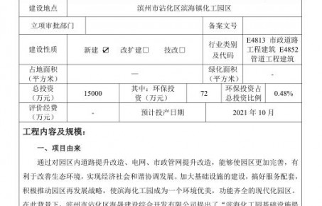 滨州市沾化区海晟建设综合开发有限公司滨海化工园基础设施提升工程《建设项目环境影响报告表》公示