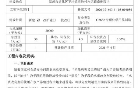 滨州天百顺生物工程有限公司年产 120吨水产养殖用水质改良剂项目《建设项目环境影响报告表》公示