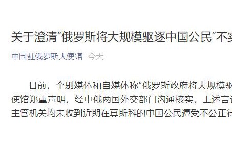 中国驻俄罗斯大使馆:“俄政府将大规模驱逐中国公民”言论严重失实