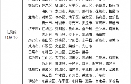最新!山东新冠肺炎疫情分区分级表出炉 青岛市胶州市为中风险地区