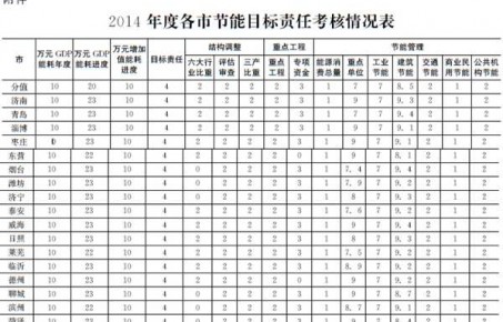 2014年山东17市均超额完成节能任务