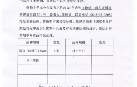 博兴县烟草专卖局案件公告20008
