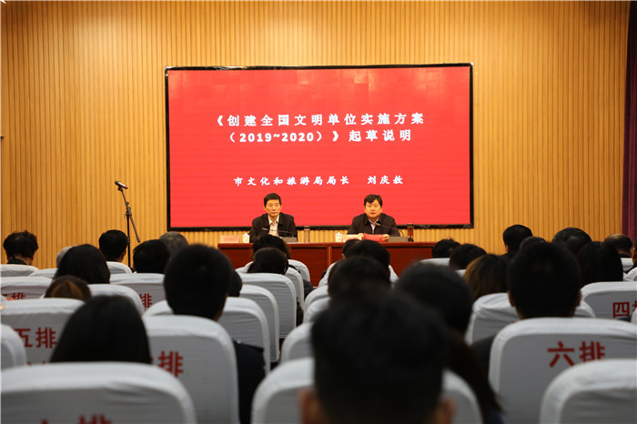 会议对《市文化和旅游局创建全国文明单位实施方案(2019~2020)》作了起草说明。