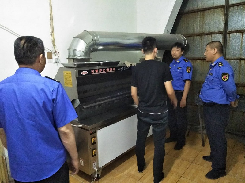 执法人员逐一查了8家烧烤店,督促业主安装油烟净化装置及烟道,并要求在工作中打开油烟净化设备,同时执法人员对业主进行法律法规讲解,告知其露天烧烤的危害和影响,引导其规范经营。督查中发现有一家烧烤店安装了油烟净化器但并未使用,要求立即整改开启油烟净化装置。
