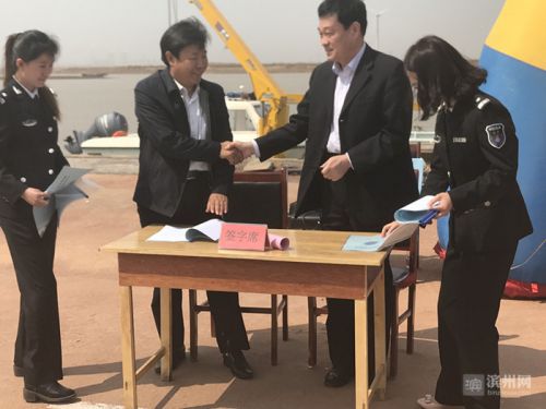 启动仪式上,滨州市海洋与渔业局对滨州市2017年海洋伏季休渔工作进行了部署,并分别与沾化区、无棣县、北海经济开发区海洋与渔业局主要负责人签订了《滨州市2017年度海洋伏季休渔责任书》,向6名伏休监督员颁发聘书,由渔政执法人员代表进行了宣誓,听取了渔民代表的发言。随后,与会人员共同登上巡逻船,参与海洋伏季休渔巡航。