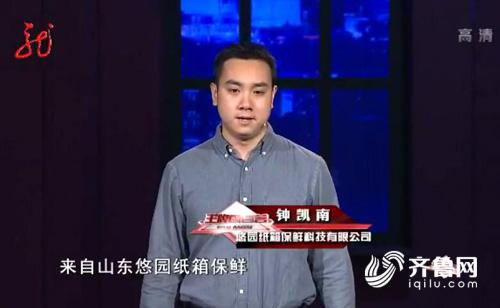 齐鲁网滨州5月2日讯 近日,滨州创客、山东优元纸箱保鲜科技有限公司的负责人钟凯南,带着他的保鲜纸箱登上了黑龙江卫视的《王牌创客营》栏目。节目中,他向五位嘉宾现场展示了他们所研发的这款保鲜纸箱的保鲜效果,并向嘉宾介绍了这项专利产品的保鲜原理及市场前景。当钟凯南从事先准备好的实验箱中取出已经存放了5天的香蕉、青椒、茄子等果蔬时,现场嘉宾纷纷惊叹纸箱的保鲜效果,多位“天使投资人”现场表示“会继续跟进”。