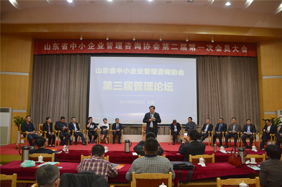 2017年4月26日,山东省中小企业管理咨询协会在济南召开第二届第一次会员大会。大会由省中小企业管理咨询协会会长、泰山管理研修学院院长马方主持,省中小企业局王兆春局长,省民政厅社会组织管理局王士力副局长出席会议并作重要讲话。省中小企业局邢亚民副巡视员应邀出席会议,协会会员单位、市级特邀理事单位代表、秘书处工作人员共130余人参加了会议。