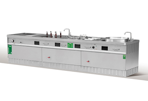 外形尺寸:3600*800*800 额定功率:炒炉12KW、煮面炉10KW、扒炉10KW、保温盆1KW、保温汤桶5KW*2 |