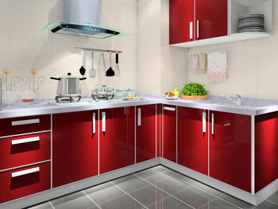 全铝家具的好处:内外一致,高品质木纹表面,大气、美观、上档次,轻便坚固使用、可用于各种家装工装,厨房、浴室柜、普通衣柜门等。红色的橱柜给人一种明亮,火热的感觉。