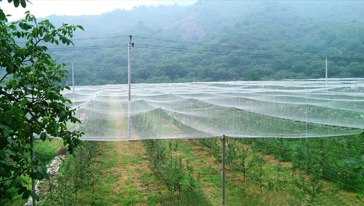 防鸟网是一种采用添加防老化、抗紫外线等化学助剂的聚乙烯为主要原料,经拉丝制造而成的网状织物,具有拉力强度大、抗热、耐水、耐腐蚀、耐老化、无毒无味、废弃物易处理等优点。能够杀灭常见的害虫,如苍蝇、蚊子等。防鸟网覆盖栽培是一项增产实用的环保型农业新技术,通过覆盖在棚架上构建人工隔离屏障,将鸟类拒之网外,切断鸟类繁殖途径,有效控制各类鸟类等的传播以及预防病毒传播的危害。且具有透光、适度遮光等作用,创造适宜作物生长的有利条件,确保大幅度减少菜田化学农药的施用,使产出农作物优质、卫生,为发展生产无污染的绿色农产品提供了强有力的技术保证。防鸟网还具有抵御暴风雨冲刷和冰雹侵袭等自然灾害的功能。