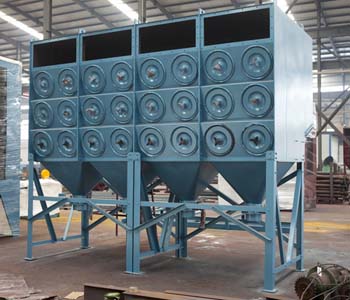 滤筒式除尘器主要由设备支架、箱体、滤筒、脉冲清灰装置、进口装置、出口装置六部分组成。