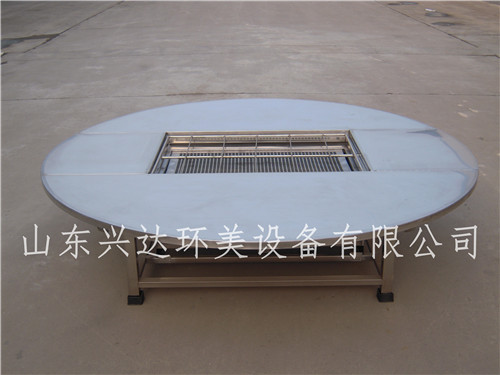无烟烧烤设备原理:炉子两边设计炭盒,中间是一个放水接油槽,在烤制 过程中食物产品的脂肪滴落到水盒里面,和炭火不接触,自然不会产生油烟,木炭选用机制炭,机制炭本身又称为无烟木炭。因为炉子独特的设计,彻底杜绝了油烟和飞灰的产生,是真正无烟环保烧烤。经营者不用再担心被环保部门严查,无论在繁华的闹市还是超市、酒店、学校、旅游度假区等,可以放心经营。从而让外出游客真正品尝到干净卫生放心的烧烤美食