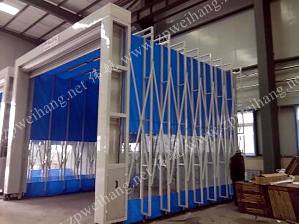包含全钢框架,喷塑处理,美观大方,防锈易清扫;抗折皱耐低温优质PVC软帘,全自动推拉电控系统;配置全套进排风系统,具有高效的粉尘过滤作用。