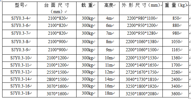 移动式升降平台规格:根据升降高度分为:4、6、8、10、12、14、16、18米,系列产品载重300公斤,8、10米也备有载重500、800公斤现货,如需特殊载重可订货,根据要求可选用380V、220V、电瓶、燃油机为升降动力特殊场所也可选用防爆电器等,本类产品手动、电动两用升降。