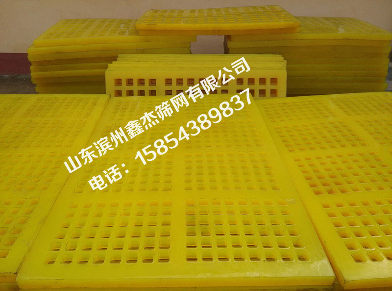 3、适用范围广,专业适用性更强,适用任何型号的振动筛机并可量机制作。聚氨酯筛板专业应用于水电站、建材及其它金属选矿业。0.1mm—170mm范围内各种物料的筛分,无论干筛、湿筛都毫不影响筛分效率。对0.5m—3mm范围内的脱水、脱介筛、更加充分地显示了聚氨酯筛面的优越性。产品耐水、耐腐蚀、耐老化,更换维护方便。聚氨酯密度小( 1.32kg/ m 3 ),重量轻于金属筛面,能降低生产单耗,因此能适应筛机大型化发展要求。