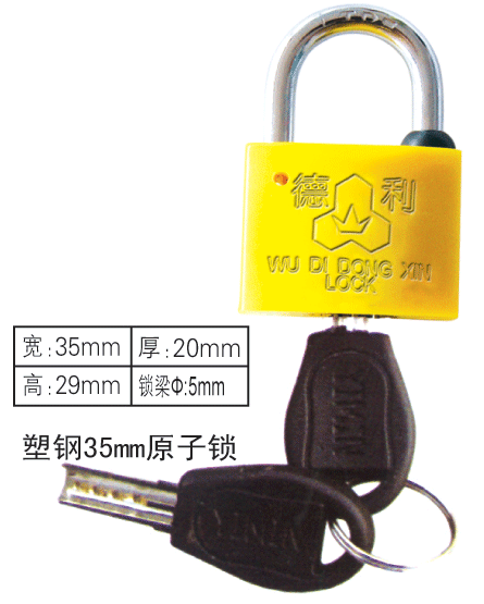 35MM原子钥匙标准锁梁塑钢锁,35MM原子钥匙4公分锁梁挂锁