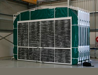 工作原理 伸缩移动前室整体为钢制框架结构,可前后伸缩移动。框架之间的滑动连接机构保证框架在驱动装置的带动下沿地面的轨道前后竖直平行移动,同时带动蓬布展开合拢。移动前室收缩合拢时,将工件移入工作区,展开时可进行工件的喷漆或打磨工作。在不喷漆的工作时间内,可将前室合拢,腾出空间场地作为其他与喷漆交叉作业的工序使用。 伸缩移动式前室工作流程: 伸缩前室收缩合拢 —— 工件移动就位——伸缩前室展开罩住工件 ——工件喷漆 ——伸缩前室收缩合拢——工件移出喷漆场地 |