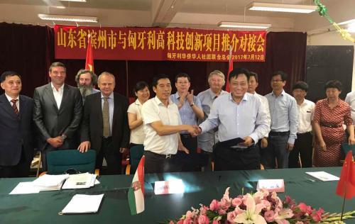 滨州市高新技术产业开发区管委会、滨州市招商局、滨州市人民政府外事与侨务办公室与匈牙利华侨华人社团联合总会签署战略合作框架协议和引进匈牙利发明专利高新项目委托招商协议等三个协议。