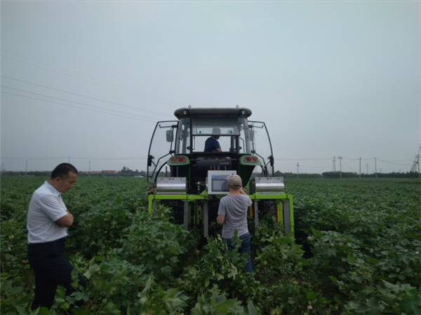近日,农业部南京农业机械化研究所茎秆类收获机械创新团队设计研发的3MD-3型棉花打顶机完成了在滨州市农业机械化科学研究所机采棉示范基地田间试验。