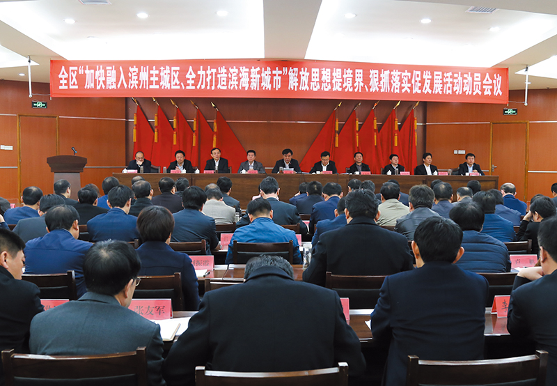 3月10日,我区组织召开“加快融入滨州主城区、全力打造滨海新城市”解放思想提境界、狠抓落实促发展活动动员会议。区委书记丁锋出席会议并作重要讲话,区委副书记、区长刘长海主持会议;全体在职区级领导干部,各乡镇、街道、海防、园区党政主要负责人,区直副科级以上党政企事业单位主要负责人参加会议。