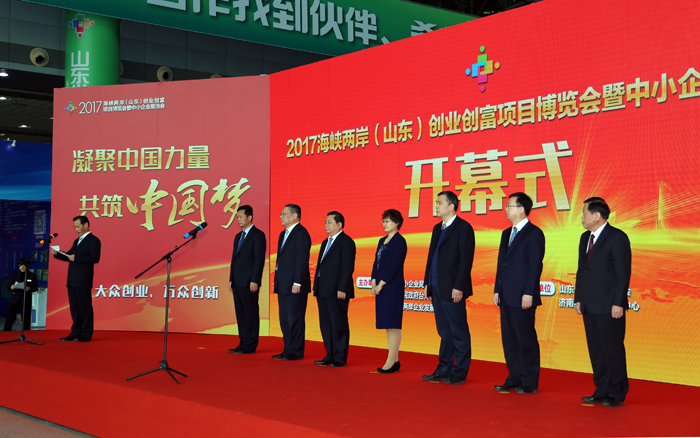 3月17日上午,2017海峡两岸(山东)创业创富项目博览会暨中小企业展洽会(简称“创博会”)在济南舜耕国际会展中心开幕。本届创博会由山东省人民政府台湾事务办公室、山东省中小企业局和台湾中华两岸企业发展联合总会共同主办,山东省担保行业协会和济南舜耕国际会展中心承办。展会为期三天。创博会致力于推动海峡两岸经贸合作与交流,促进鲁台中小企业项目对接,构建两岸创业创新合作平台,引领更多的中小企业在“双创”中实现创新发展。
