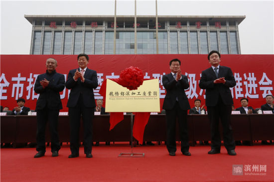 3月20日,滨州市招商引资暨产业转型升级示范推进会在魏桥铝深加工产业园召开。会议的主要目的是推动滨州铝产业不断向高端延伸,不断向5000亿级集群目标迈进。会上,魏桥铝深加工产业园正式启动,首批7家企业签约入驻。市委书记、市人大常委会主任张光峰出席会议并为魏桥铝深加工产业园揭牌。