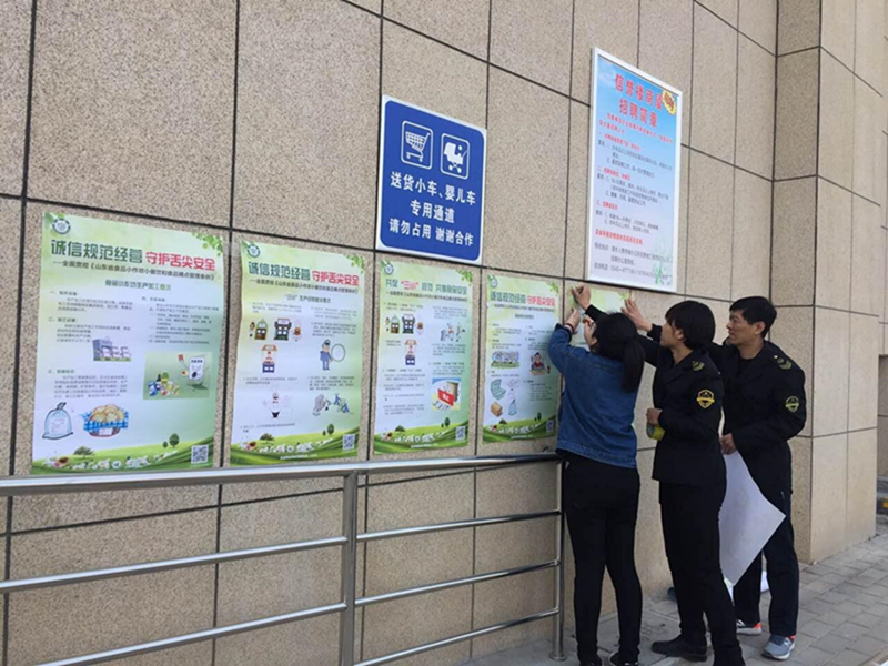 三是构建全方位宣传平台。整合各类宣传资源,以横幅标语、展板墙报、LED显示屏、电台电视、互联网、移动通讯和微博微信等媒体为载体,宣传、解读条例知识,宣传报道监管成效,大力开展条例进街道、进社区、进农贸市场、进校园等宣传活动,发放宣传资料,提高条例的社会普及率和知晓度,截止目前,已张贴各类宣传海报300余份,发放各类宣传手册700余份,开展各类问卷调查260余份,营造了全社会积极学习、认真贯彻的舆论环境,形成了公众和媒体依法监督和维护食品安全的良好氛围。