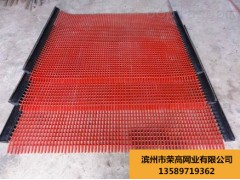 棒条筛网的筛片,该筛片包括筛棒和梁架,数个筛棒等距排列并且一端均固定在梁架上,筛棒包括棒芯、棒套和铆头,棒芯一端固定在梁架上;棒套整体呈一圆台形结构,并且分为数个相应的变径段,变径段依次套设于棒芯的另一端上;铆头设于棒芯顶端,并与棒套一端相抵固定。通过圆台形的棒套使得筛棒之间的间隙构成一个锥形形状的网孔,从而避免了临界颗粒堵塞筛网;通过设置弹性胶垫圈来吸收棒芯在随机振动时出现的扰度或扰力,防止棒套受损,并增加了筛棒的弹性幅度,从而产生二次振动,更加有利于临界颗粒的筛分;另外,棒套采用了陶瓷材料,能够有效避免酸碱物料的腐蚀,延长其使用寿命。